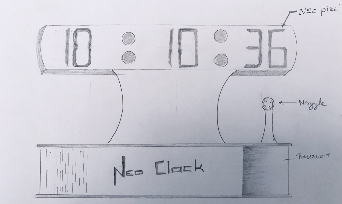 I decided to change my final project. This time I want to make an alarm clock.The interesting part is, it consists of a water pump which will pump water if user dosen't switch off alarm. I am planinig to make seven segment display using neopixel led. The enclosure will be made of acrylic sheets. 7 segment display will be made using 3D printed parts and sand blasted transpareent acrylic sheets.