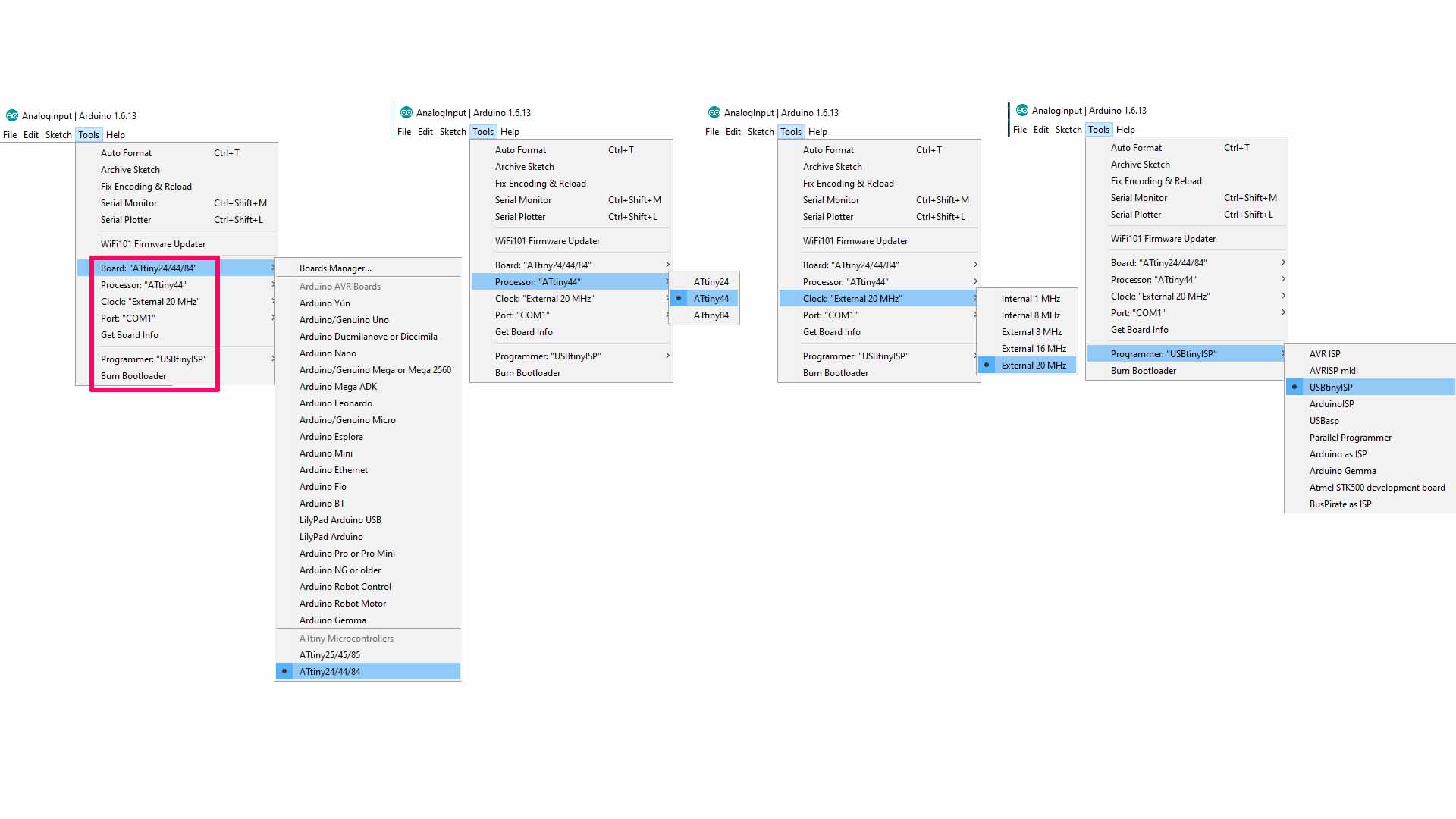 By default the arduino software doesnt contain Attiny 44 chip librarys. We need to include the deatils manually.
