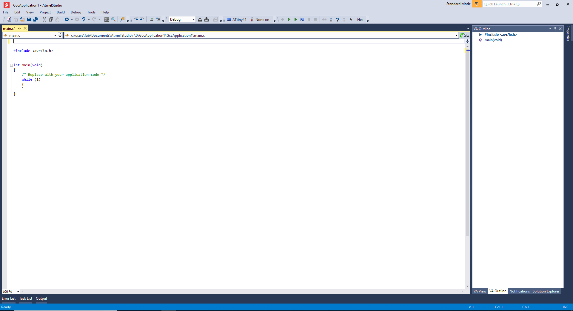 Studio 7 is the integrated development platform (IDP) for developing and debugging all AVR® and SAM microcontroller applications. The Atmel Studio 7 IDP gives you a seamless and easy-to-use environment to write, build and debug your applications written in C/C++ or assembly code. It also connects seamlessly to the debuggers, programmers and development kits that support AVR® and SAM devices.