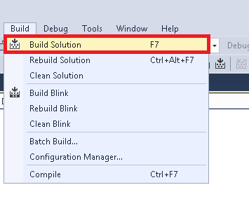 For Uploading code first we need to build/compile it by using Build > Build Soution