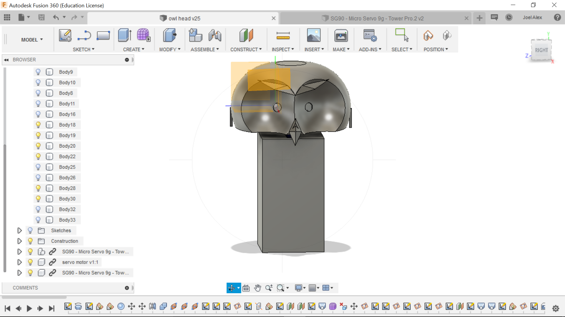 My first task was to design the shape of the head that will look similar to an owl, i used the awesome fusion 360 for the same