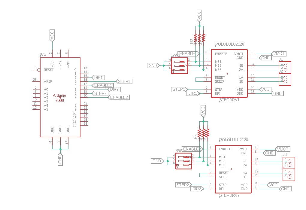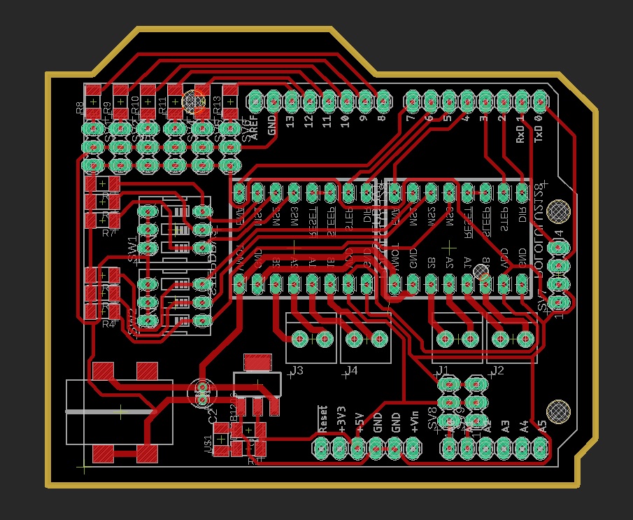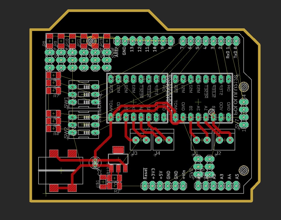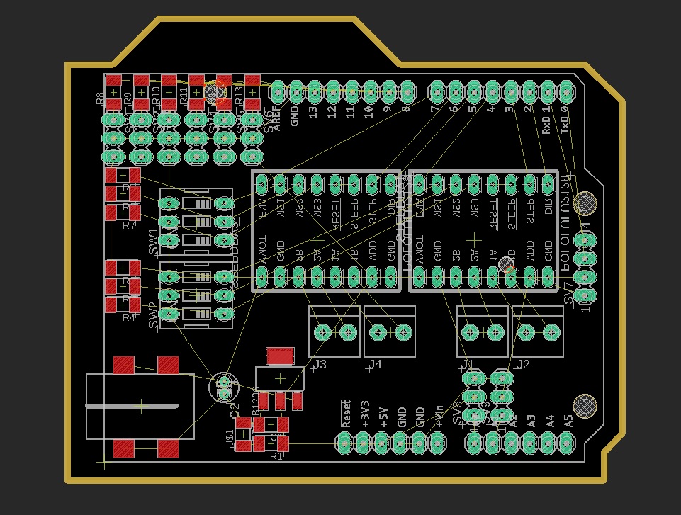 I have been using the manual routing method. So first I set the design rules for Modella MDX-20 and Route the power lines. The power lines are 32 mill and the signal lines are 16mill