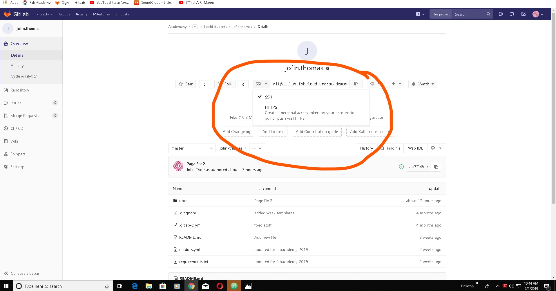 Here I am going to use gitlab for my project management. So I have created an account in gitlab. As you can see in the below image, there are two access protocols which you can establish a connection with gitlab.The SSH protocol and HTTP(s) protocol.