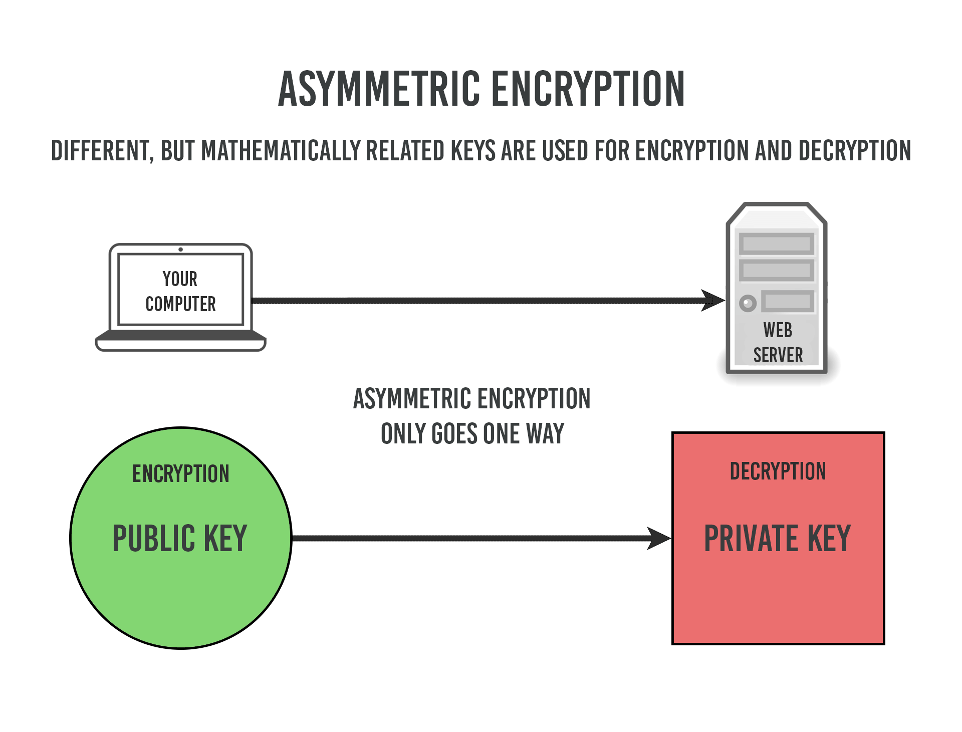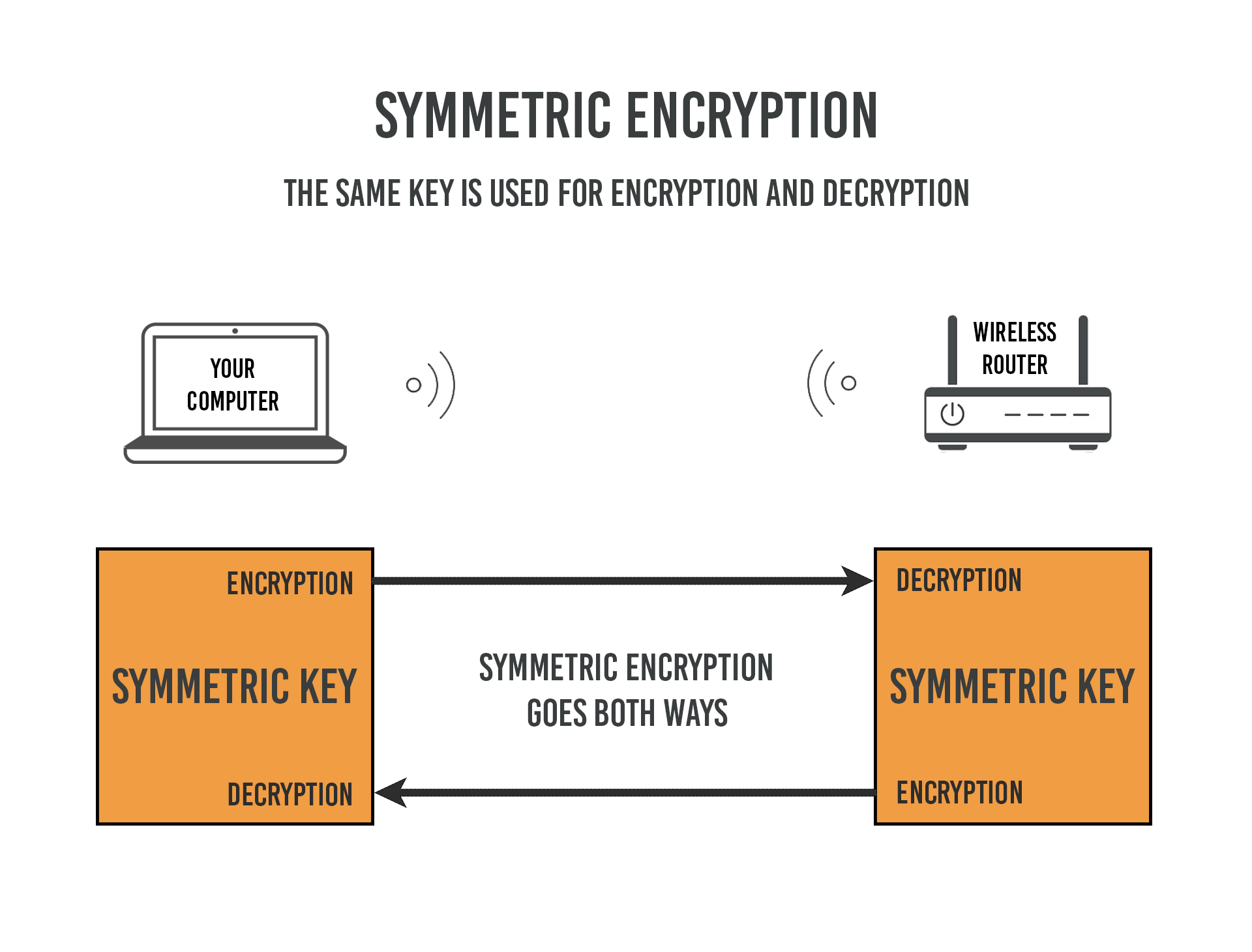 When you use the same encryption key on both ends it’s called symmetric encryption. This is what your home WiFi uses. You have just one key, or “password”, which you plug into both your wireless router and your laptop. Easy peasy.But it becomes more complicated when connecting to a website on the public internet. Symmetric encryption, by itself, won’t work because you don’t control the other end of the connection. How do you share a secret key with each other without the risk of someone on the internet intercepting it in the middle?