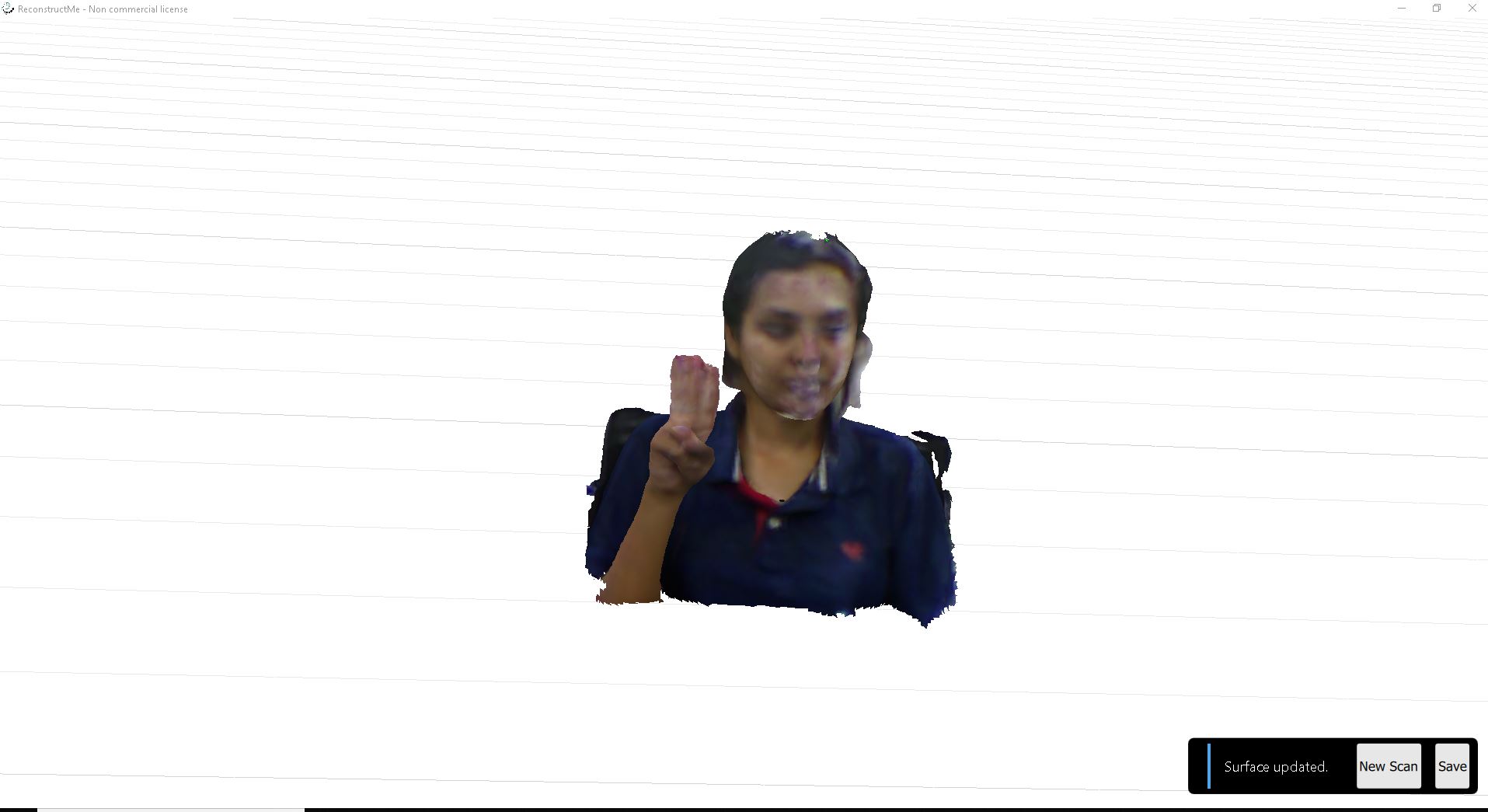 My friend Gauri volantear for 3d scanning. I have used Re-Construct Me . I started a new scan and select Kinect as input device.