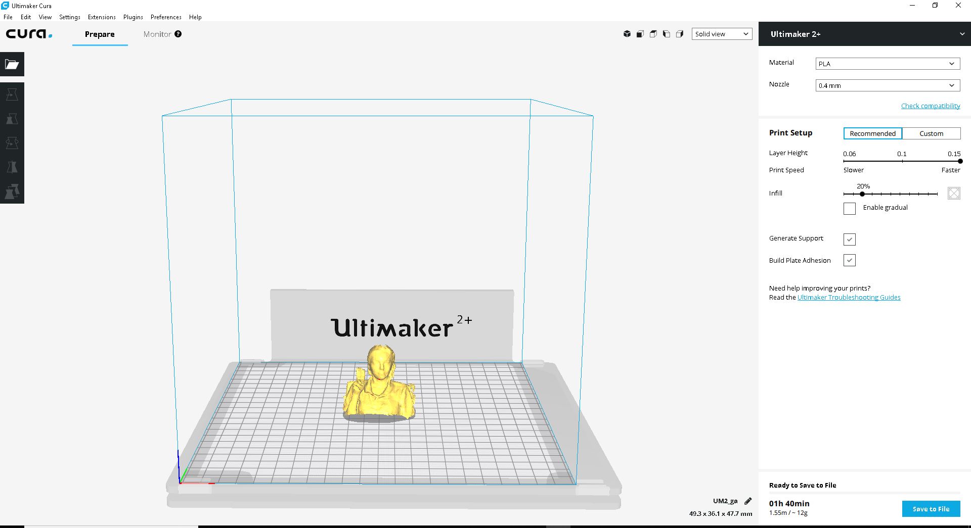 Now we have to print it out. For that we put the file into cura and export G-code