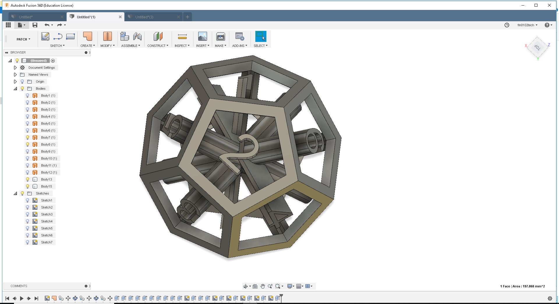 Assignment was Design and 3D Print that could not be made subtractively , So I have designed a dodecahedronal dice In Fusion360. For that first I made a pentagon and made a cut out using "Patch" from the menu.