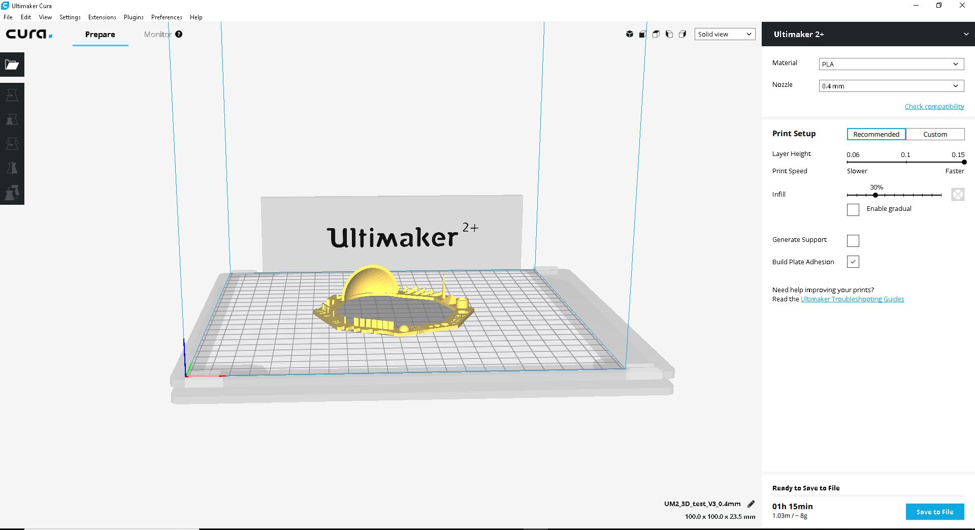 Now export the G-code to SD card and put into Ultimaker