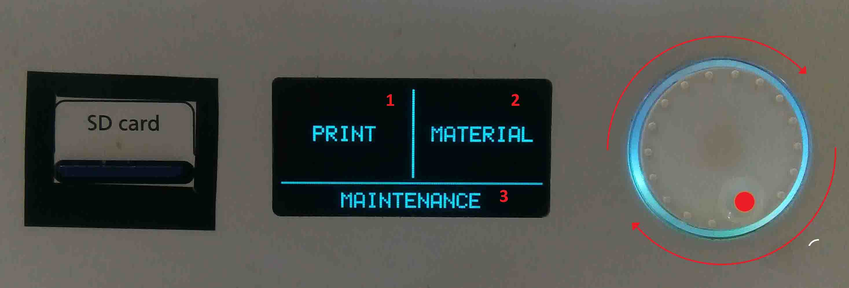 Here we can select each options using the "push-rotate" button. Now we need to give the print command using the push rotate button.