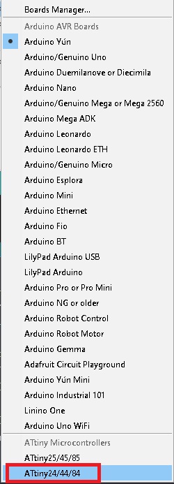 Now you can select ATtiny44 under the ATtiny Microcontrollers in board Selection