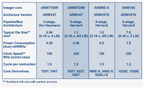 The nomenclature of ARMs is based on the type and features used in it. For example in ARM7TDMI, ‘T‘ stands for Thumb, ‘D’ and ‘I’ together comprise the on chip debugging facilities and ‘M’ signifies support for an enhanced multiplier and support for 64-bit results. ARMx7z like the ARM1176JZ-S indicates AXI bus, physically mapped caches and MMU, has version 6Z architecture. In this way, there is a naming convention for ARM devices.