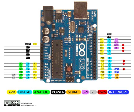 Arduino Uno is a microcontroller board based on 8-bit ATmega328P microcontroller. Along with ATmega328P, it consists other components such as crystal oscillator, serial communication, voltage regulator, etc. to support the microcontroller. Arduino Uno has 14 digital input/output pins (out of which 6 can be used as PWM outputs), 6 analog input pins, a USB connection, A Power barrel jack, an ICSP header and a reset button.