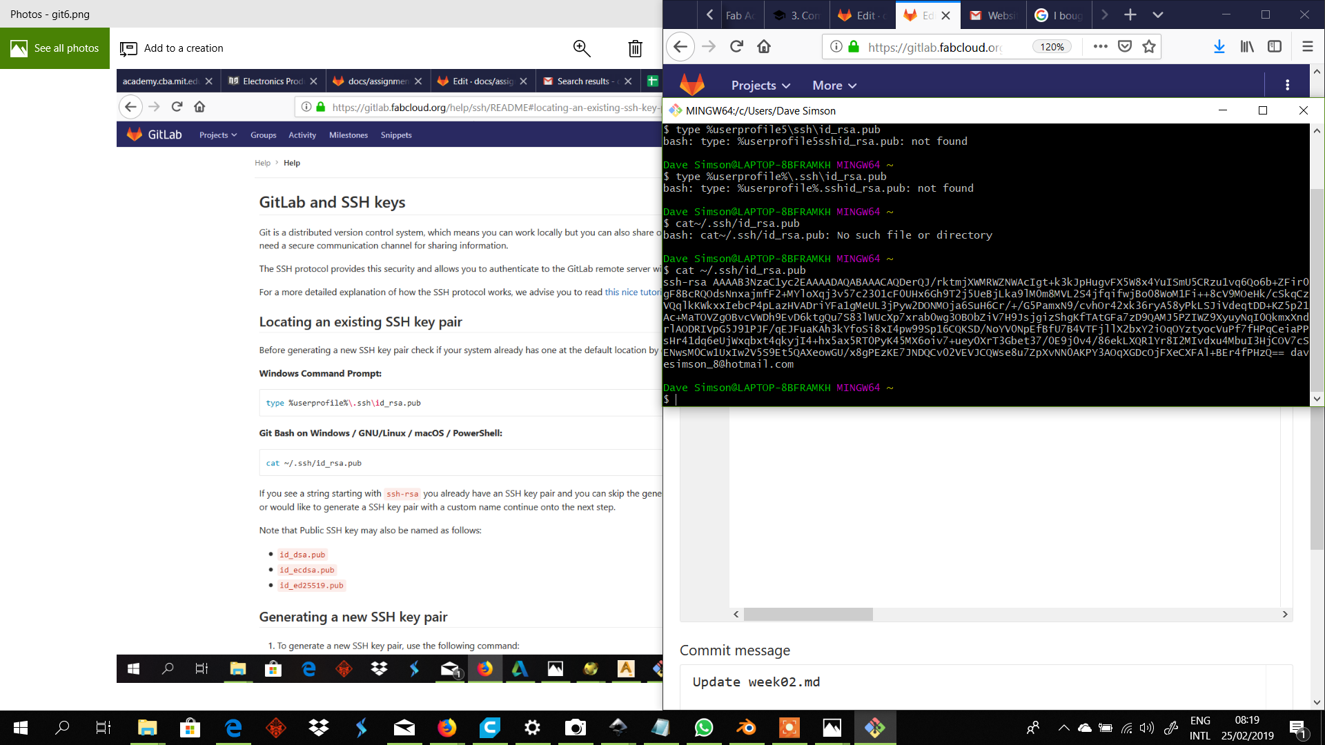 Because I did not get Gitlab from the get go, I seeked a lot of council from my class mates who helped me understand the following. First you need to download Gitbash to generate an SSH key for security :