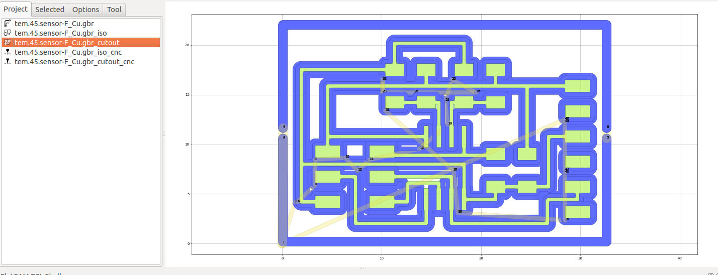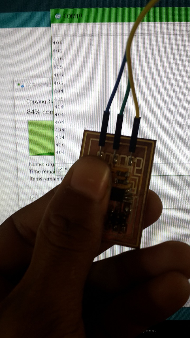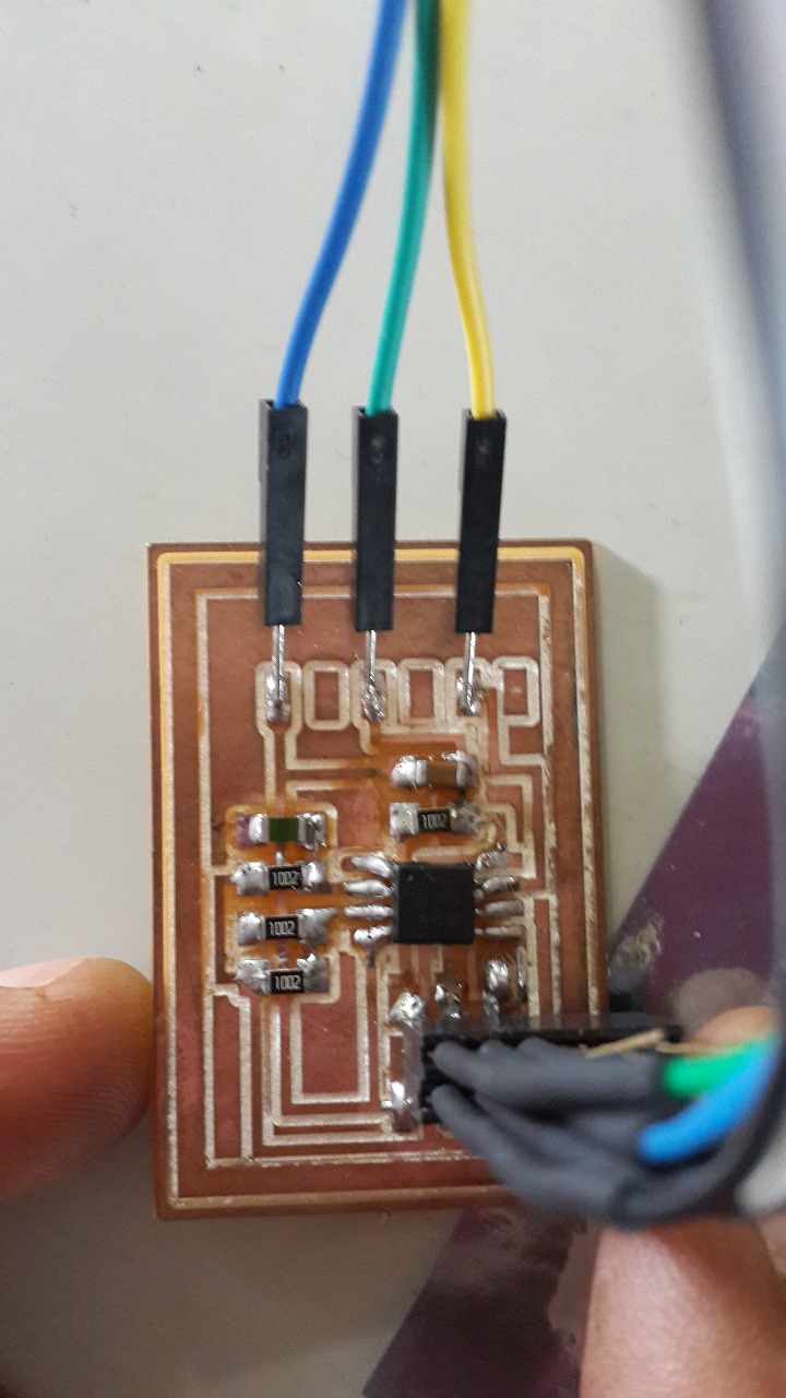 When the board was finished, I connected my programmer to burn the bootloader and test the code for sensing.