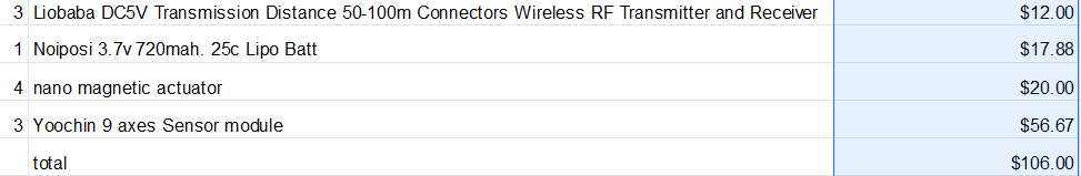 8 Bamboo insect pattern wings 4 Drone propellers 4 Drone motor 16Temperture sensors 8 Led 2 Custem Atiny 3 Shields 3 Magnetic release