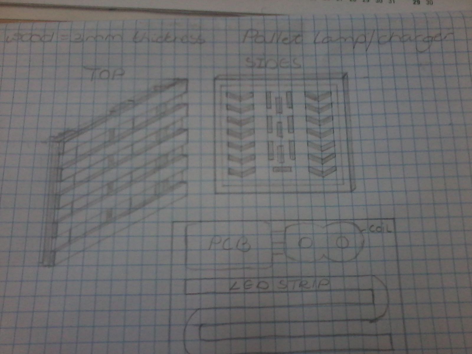 For this project I will use 3 mm wood that will be lasercut. This wooden case will contain a PCB circuit with coils and a strip of multi colored LED.