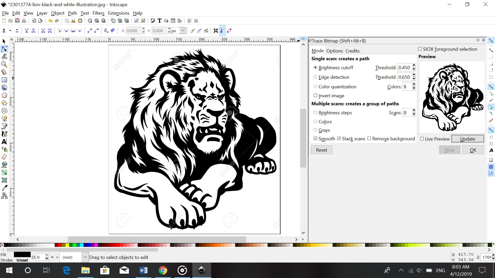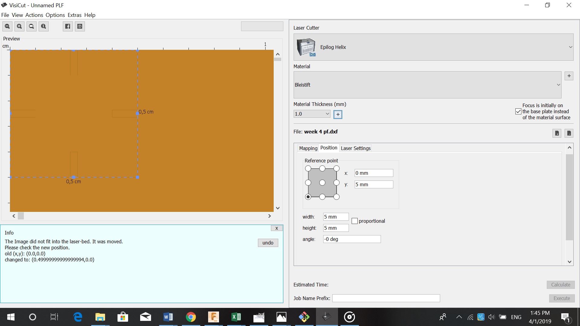 After saving the SVG file I opened it in Canvas workspace (This converts file to a readible file for the vinyl cutter). There I resized it and saved the file on my USB stick.