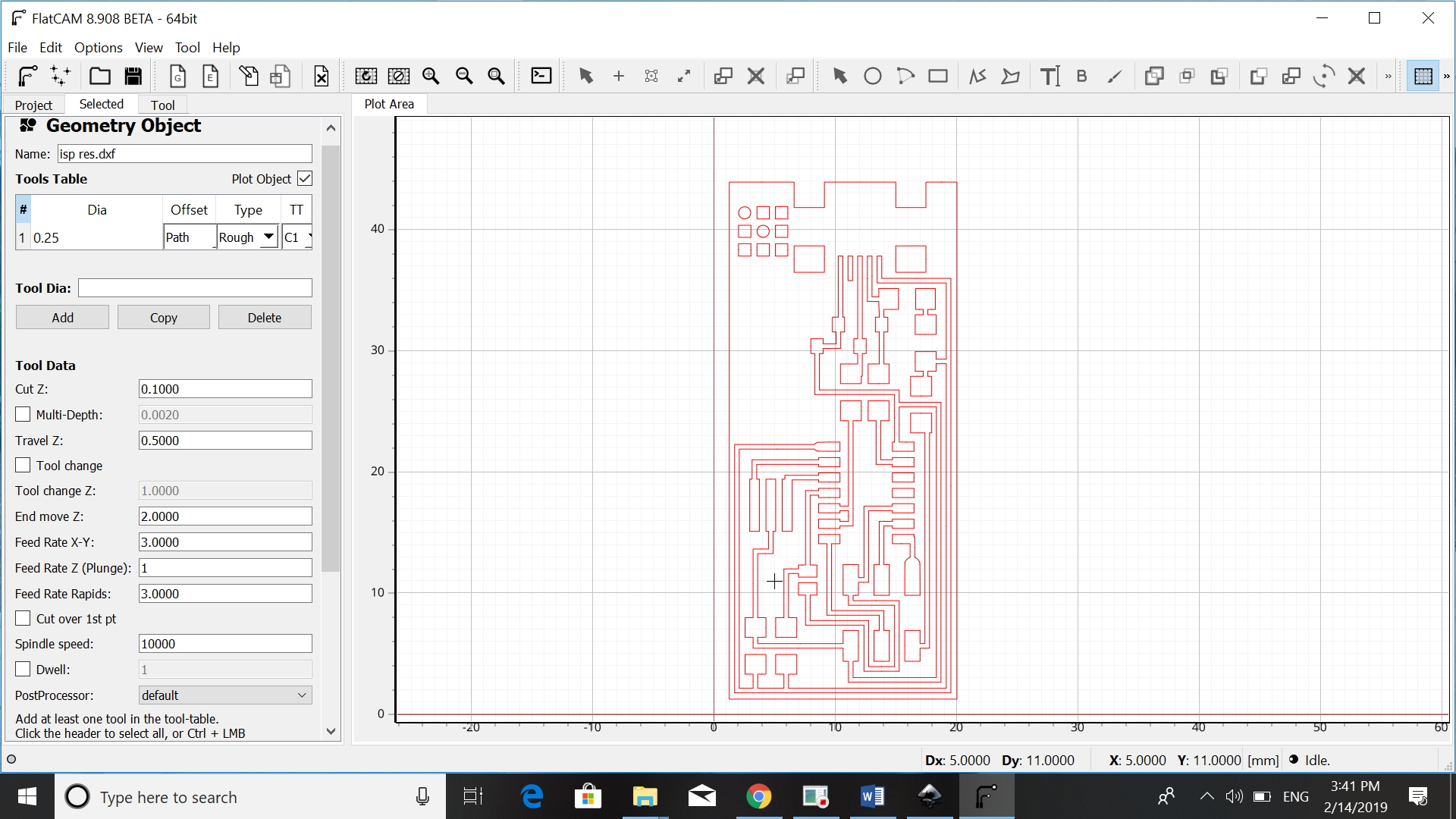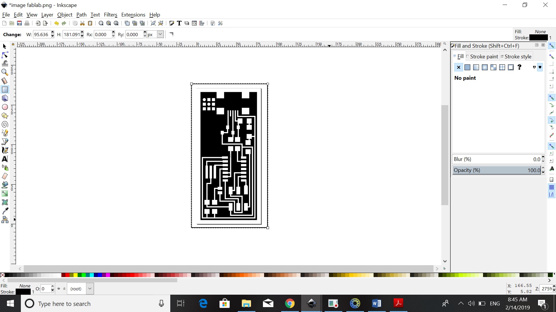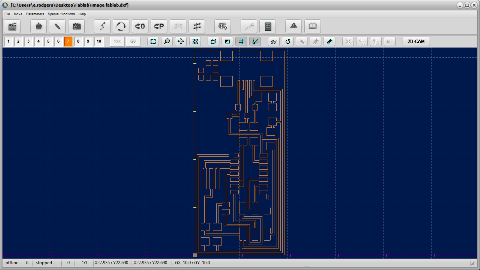 For our individual assignment we had to make an in-circuit programmer by milling the PCB, program it, then optionally try other PCB processes. First of all I downloaded the traces file belonging to hello.ISP.44.res.cad. I then opened it in InkScape did the following steps