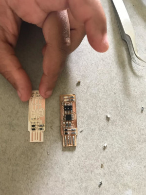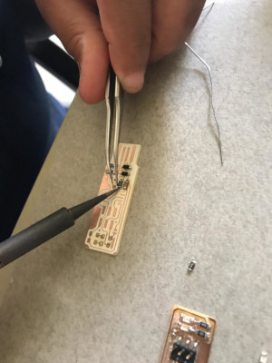 After the PCB has been milled. I went on to solder the components on the board. The components that we had to solder were