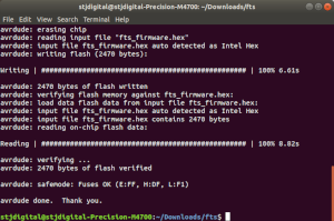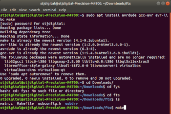- run make, you get a file called fts_firmware.hex. You will see this new file in your Unzipped firmware folder