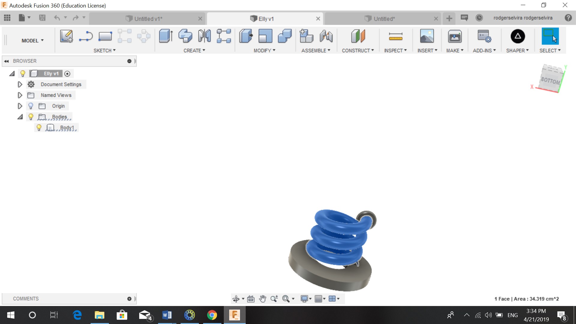 Because of the form of my design, the coil did not have smooth edges beneath it because the printer had to print the form without any support. This is why it also is a non substractive object.