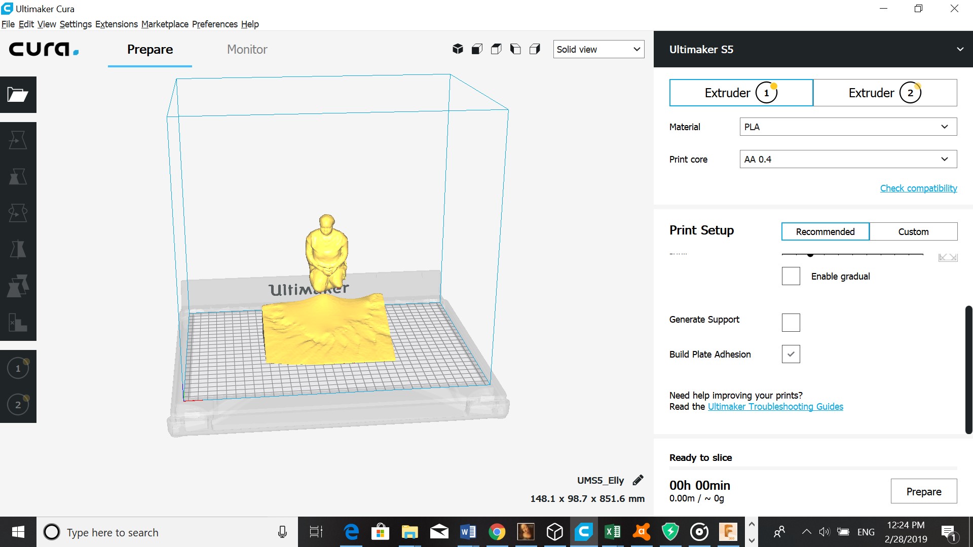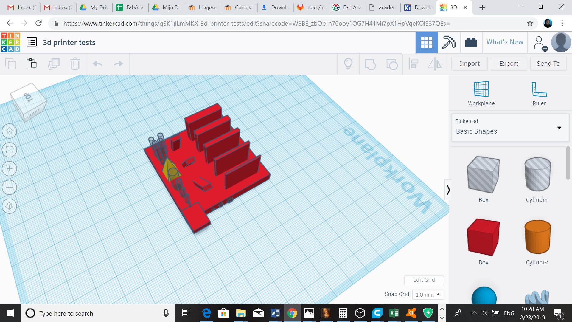 The group assignment was to test the design rules for our 3D printer. We used the Ultimaker 2 extended +. See more info. The material that was used was the PLA color silver, 2.85mm and we also had to downloaded the software Cura 3.6.0. We then followed these steps