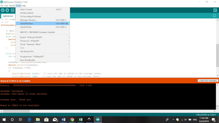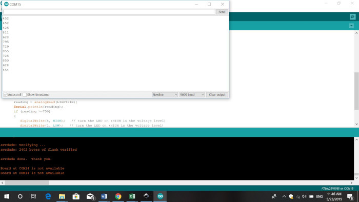 I checked the serial monitor, but I kept on getting COM 14 not available. It was on COM 15.