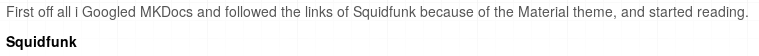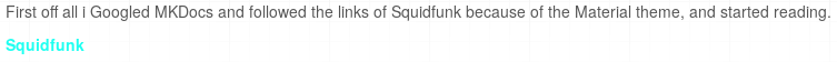 First off all i Googled MKDocs and followed the links of Squidfunk because of the Material theme, and started reading.