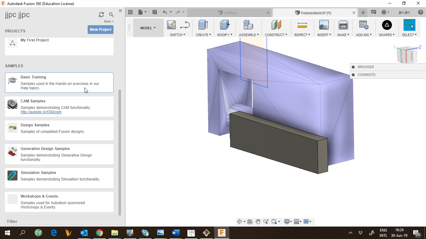 Start with the basic training and follow other tutorials online (see video below) The learning line is really steap, but as i saw with one off my fellow students, is when you got is this program is amazing. You can do almost all designing with Fusion 360 and Eagle for electronics.