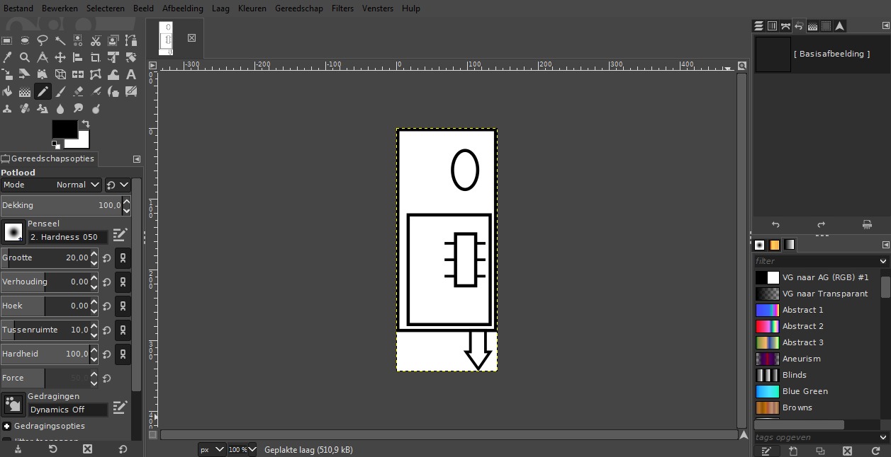 The third software i used was GIMP, GIMP is an open source alternative for Adobe Photoshop. Compared with Paint it is a really proffesional software with lots of options and possibilities for plugins. The nice thing is that you can work in layers and build up a whole design.