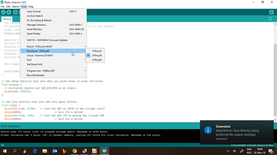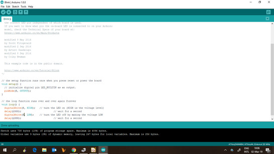 To test the board, I used the Blink example from Arduino, but had to change the led pin number to 8.