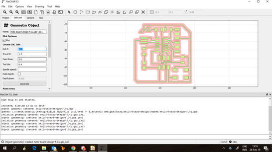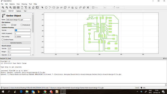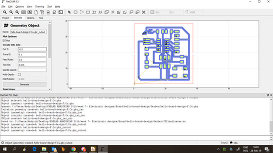 When the PCB design is ready, the gerber files are created, and then I used FlatCAM to create the gCode from the gerber files.
