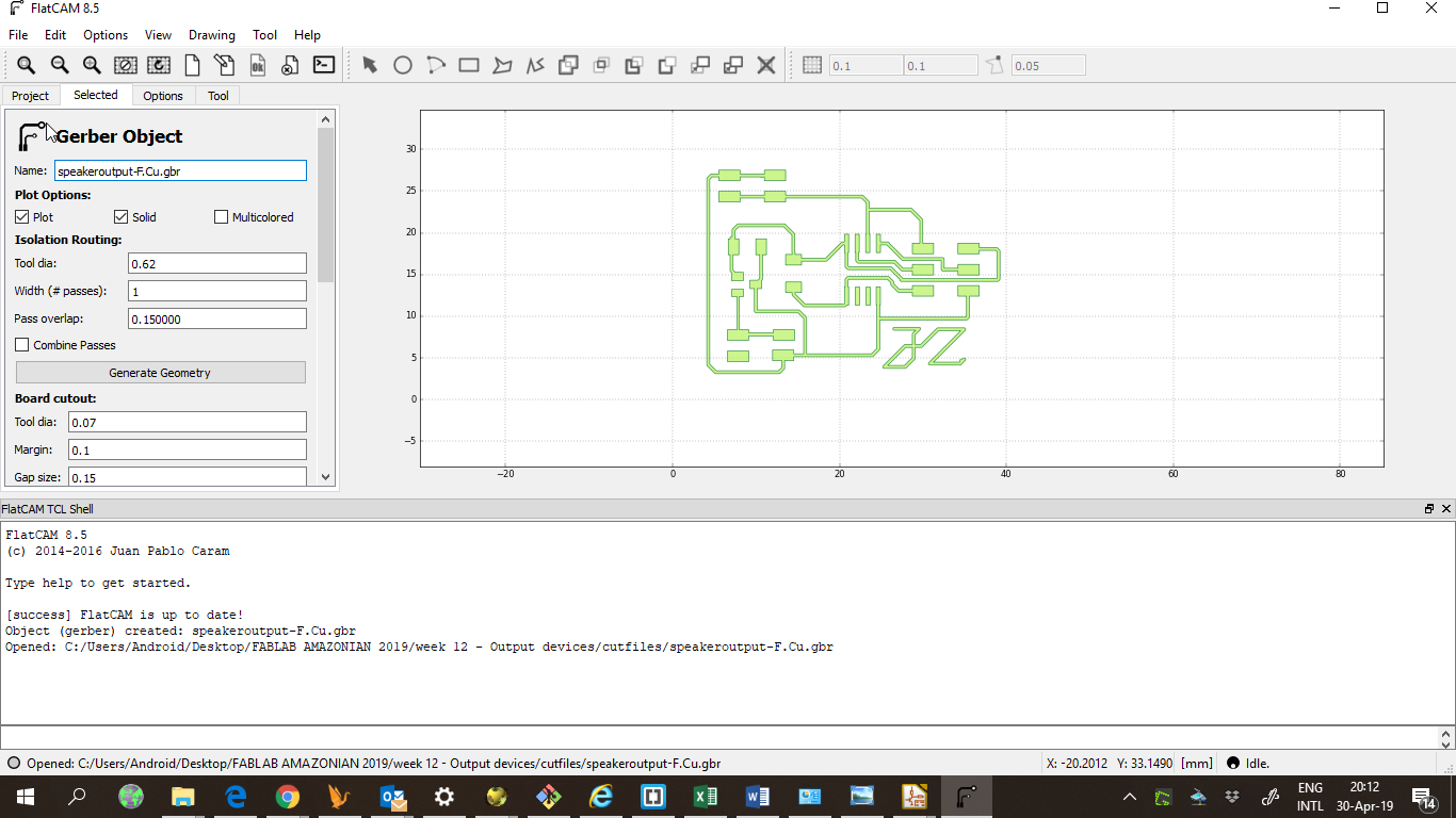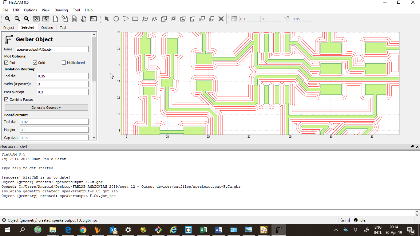 -Tool dia: 0,4 -Cut z: -0,15 -Feedrate: 1 -Spindle: 2000