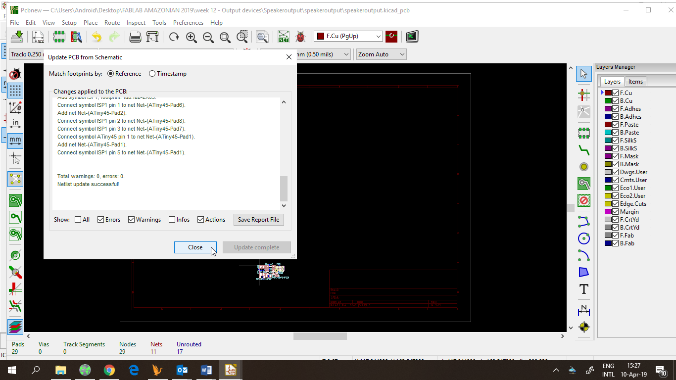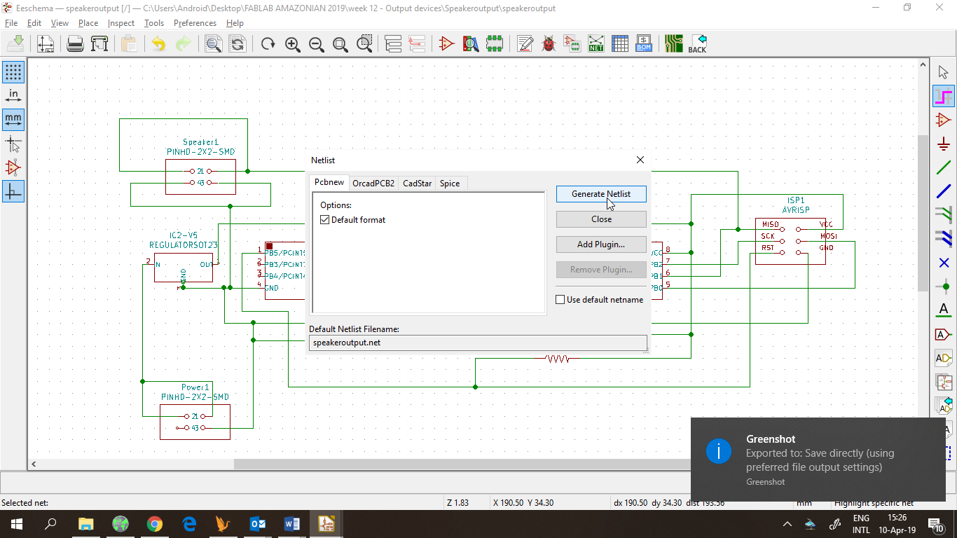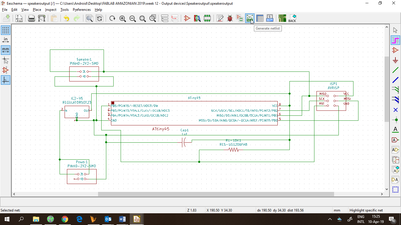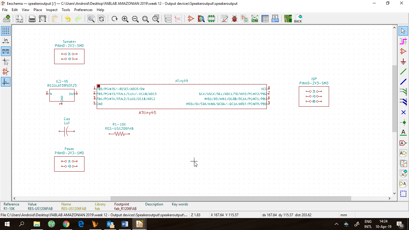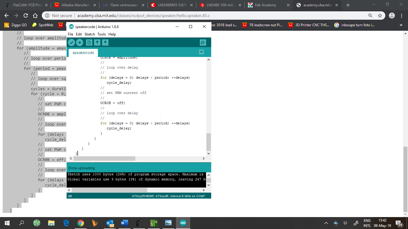 I used the Hello_Speaker 45 , because my end project will have a build in speaker. So i could have also used the solenoid within the design, but because coding is not really my thing i have to start simple. As Neil said Spiral development is the best method make one thing work and then go to the next. And as my final project will use a speaker i started off with that, and i would be testing in a later stadium with the solenoid and speaker together.