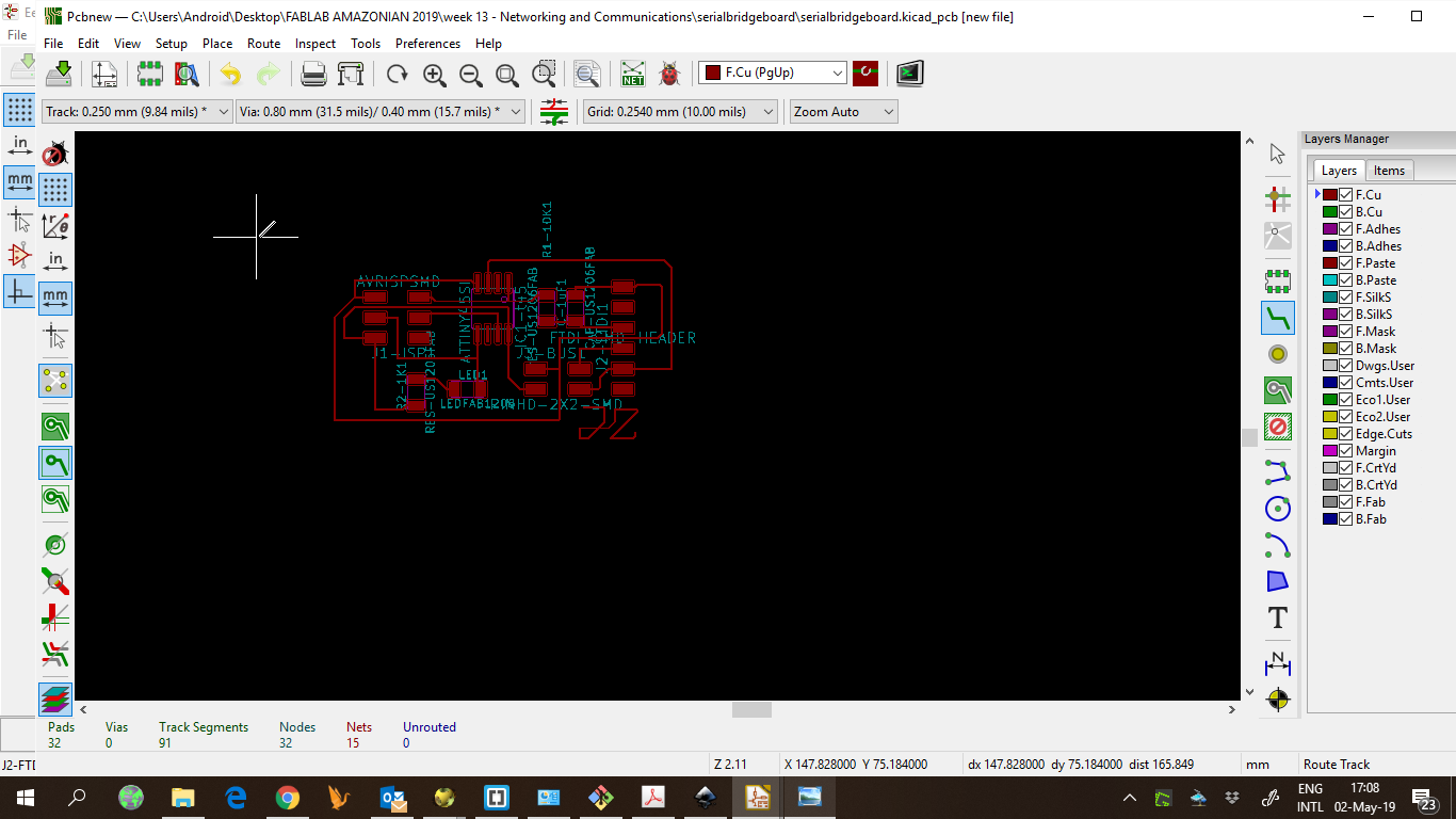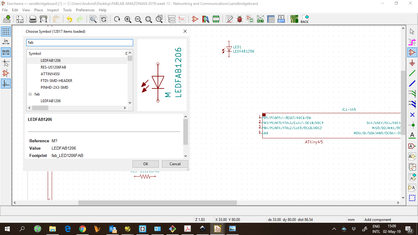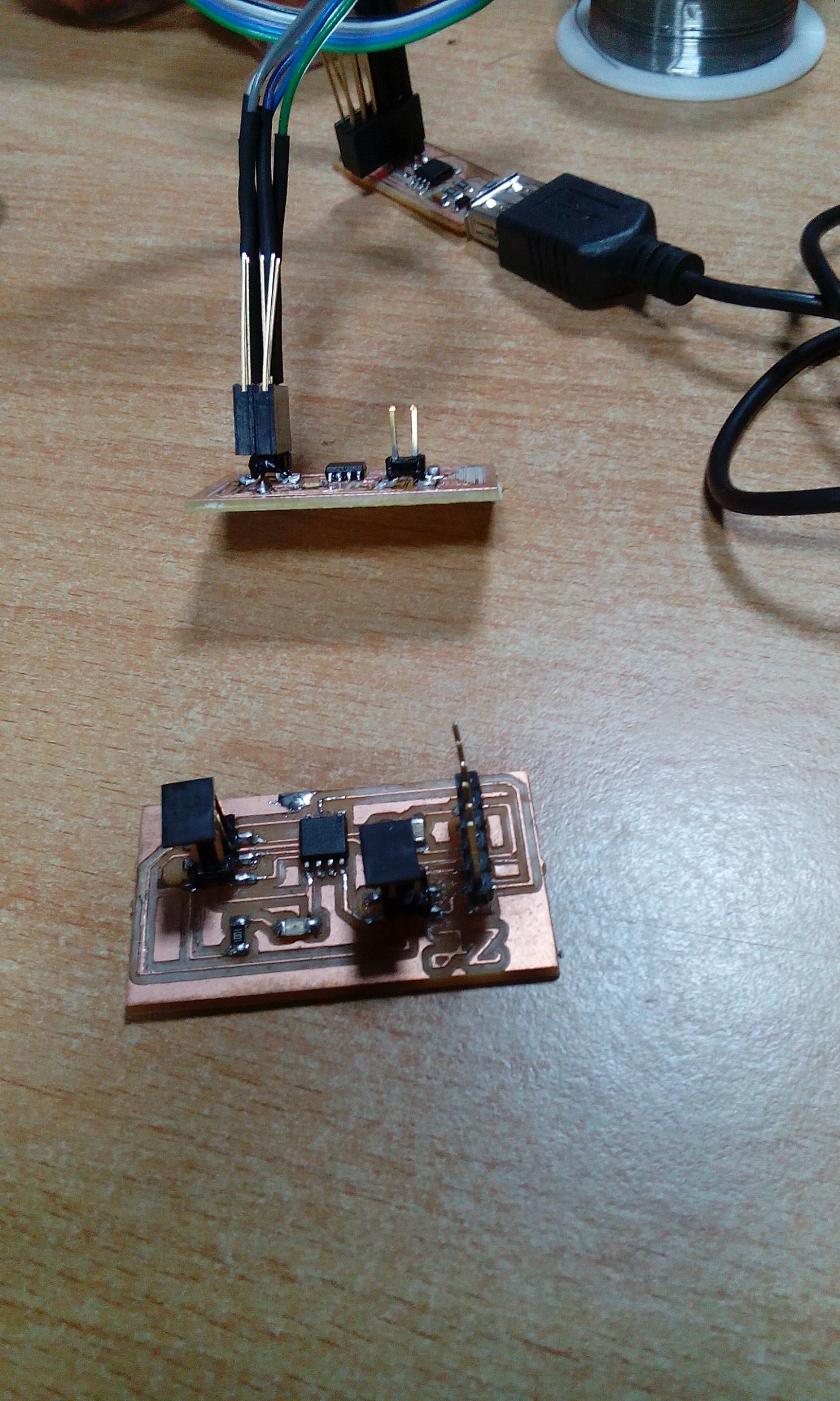 This version (the “FabTinyISP Minimal” is a minor revision to Zaerc’s version 0.3 (Bas), with small modifications Compared with the ISP programmer which i made in week 5 this is much easier to use because it connect straight into the computer or laptop without using an USB cable.