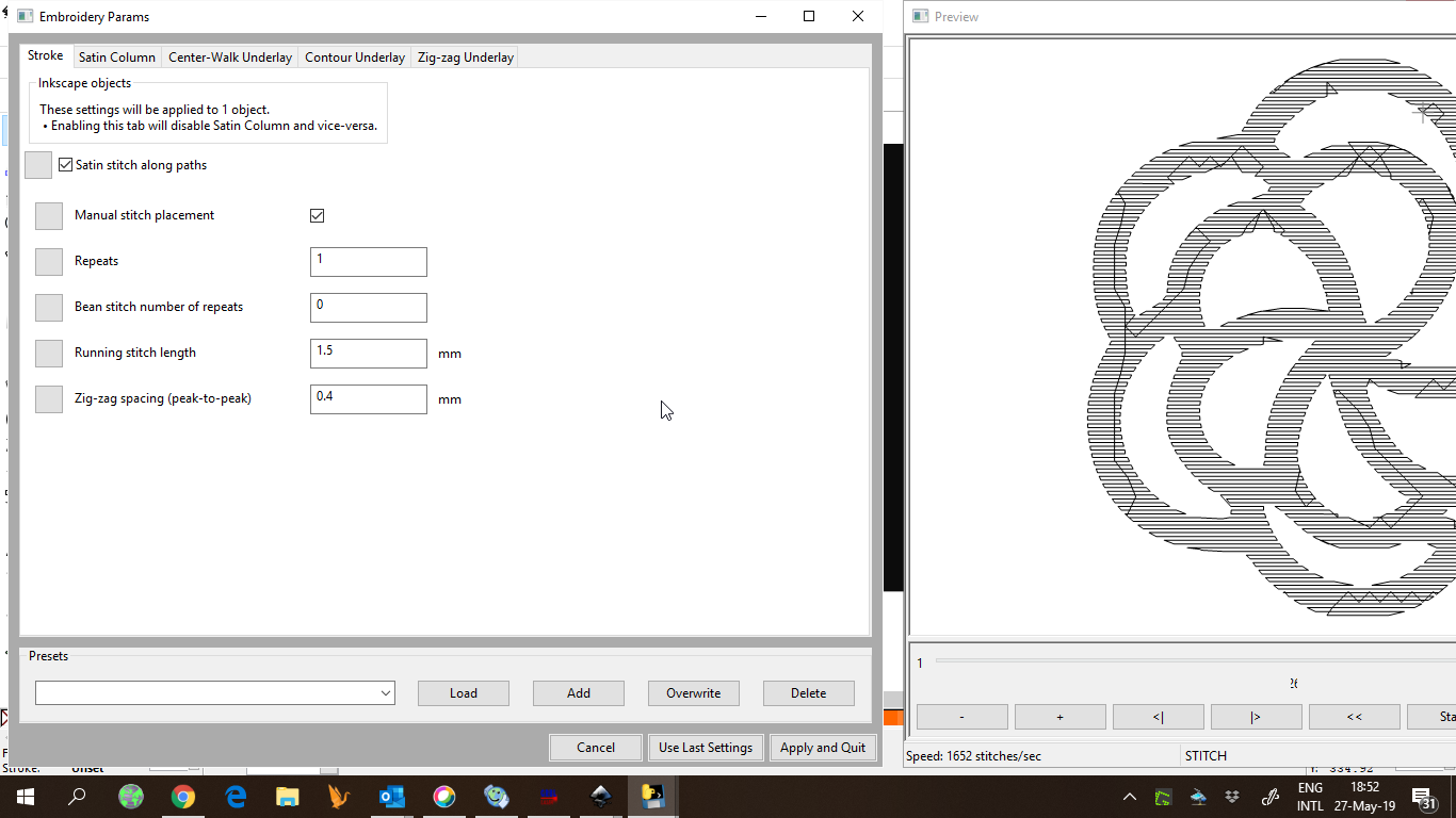 When this is opened up, you will get the first Tab “Stroke” here you can configure several thing, all about the stiches.