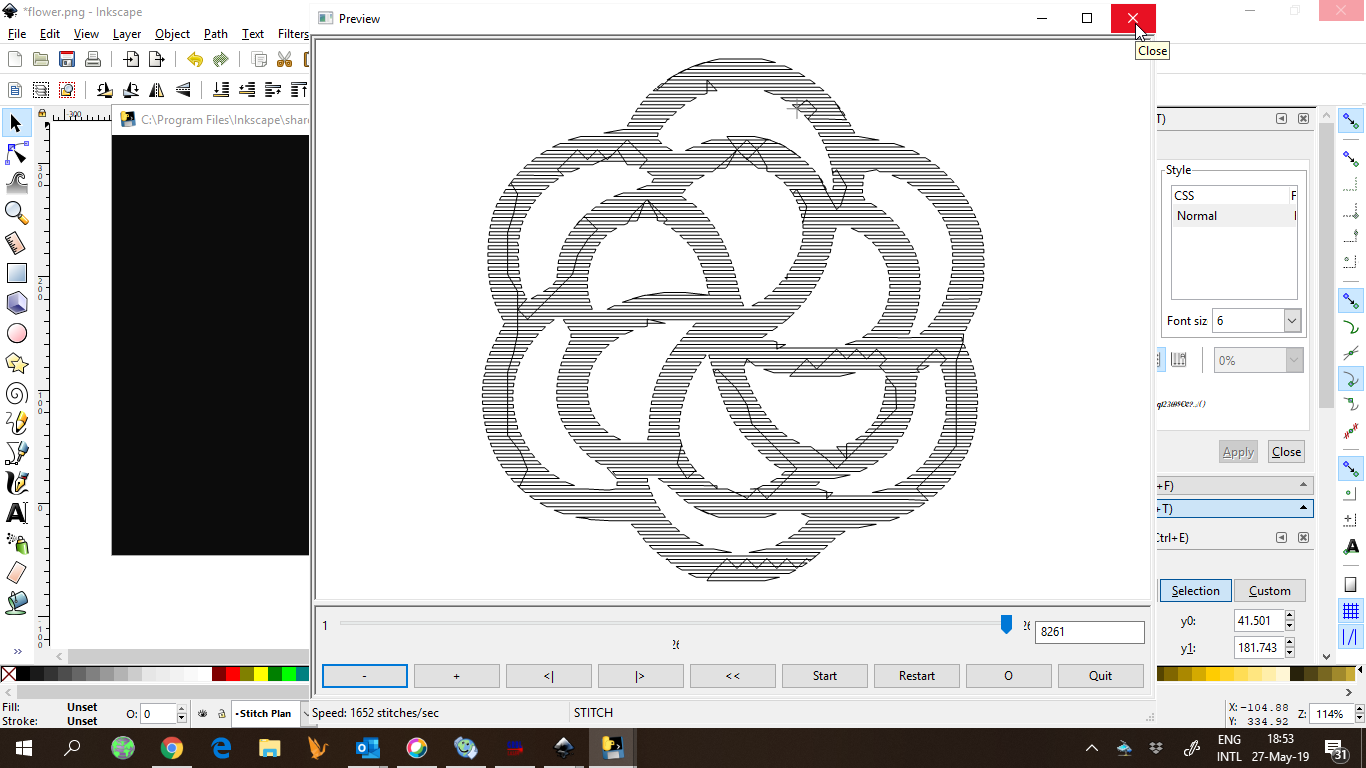 The file for the design was on an USB stick, the machine recognizes the file And loads it in to the machine UI