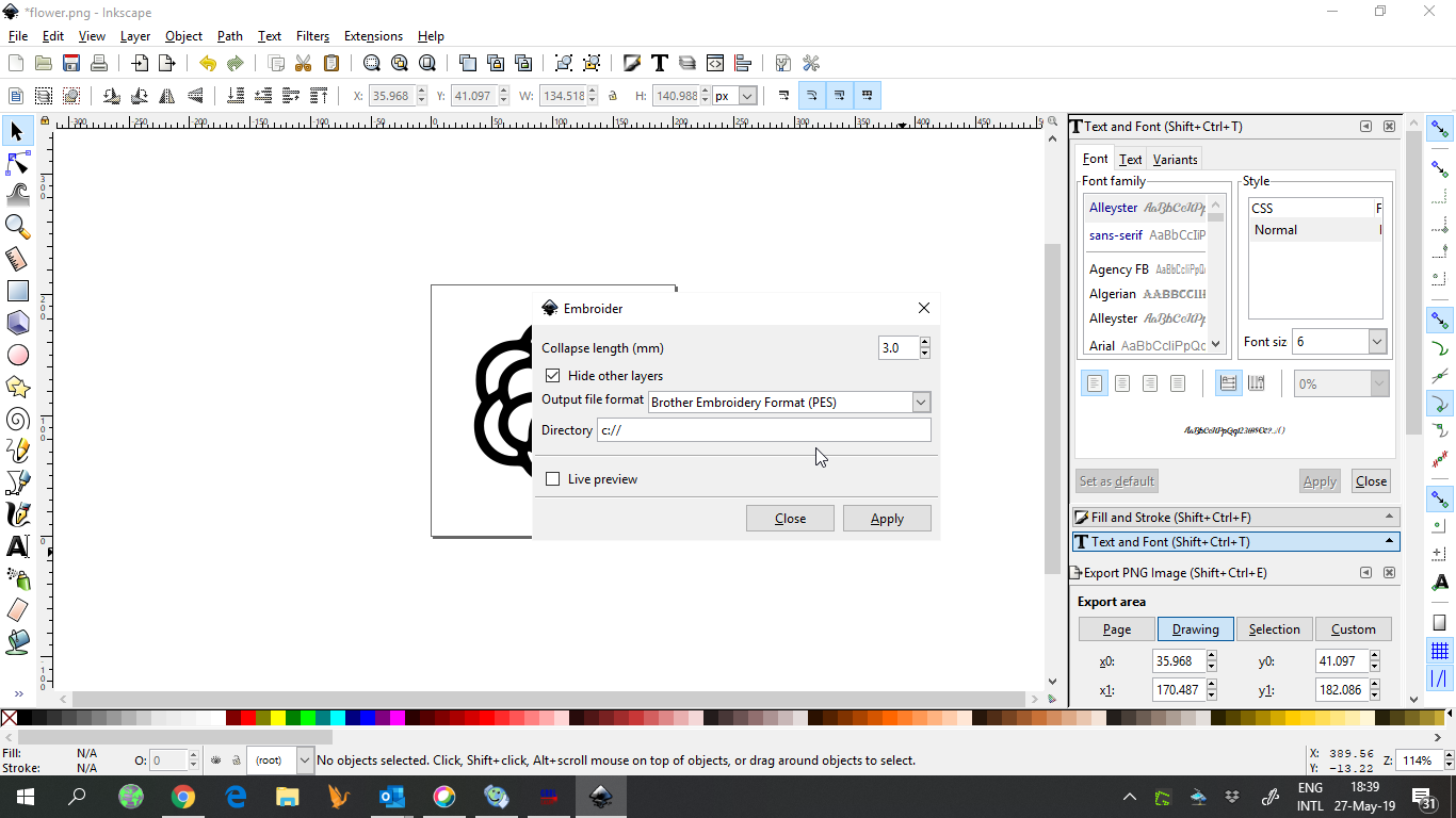 When you save your file it wil have the PES extension this it the Brother embroidery format that the Brother machine uses. i choosed a folder and then saved it to an USB harddrive