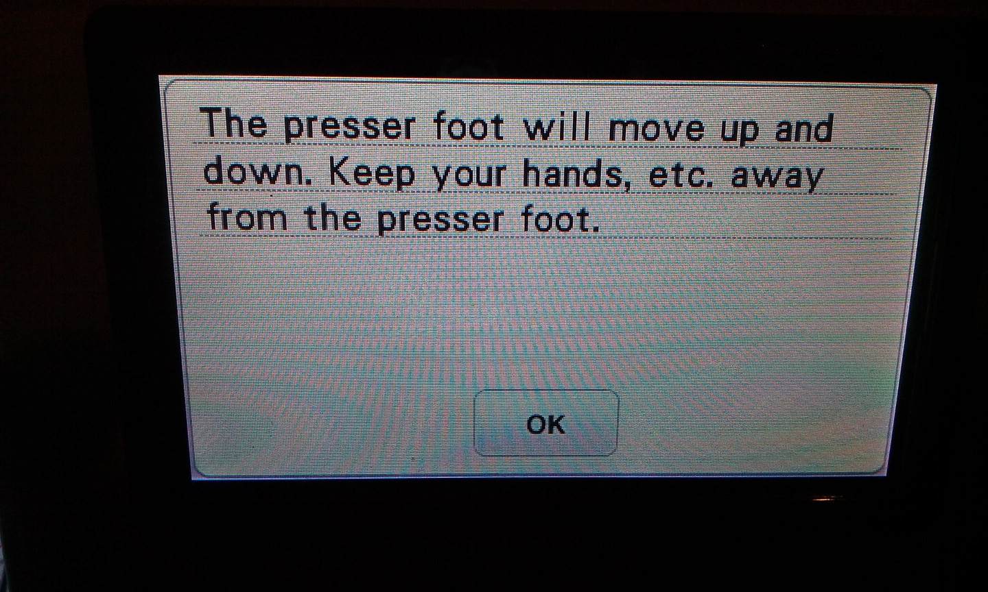 During the boot then machine will give a warning because it will move certain things like the foot with the needle.