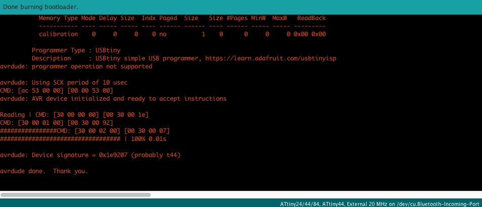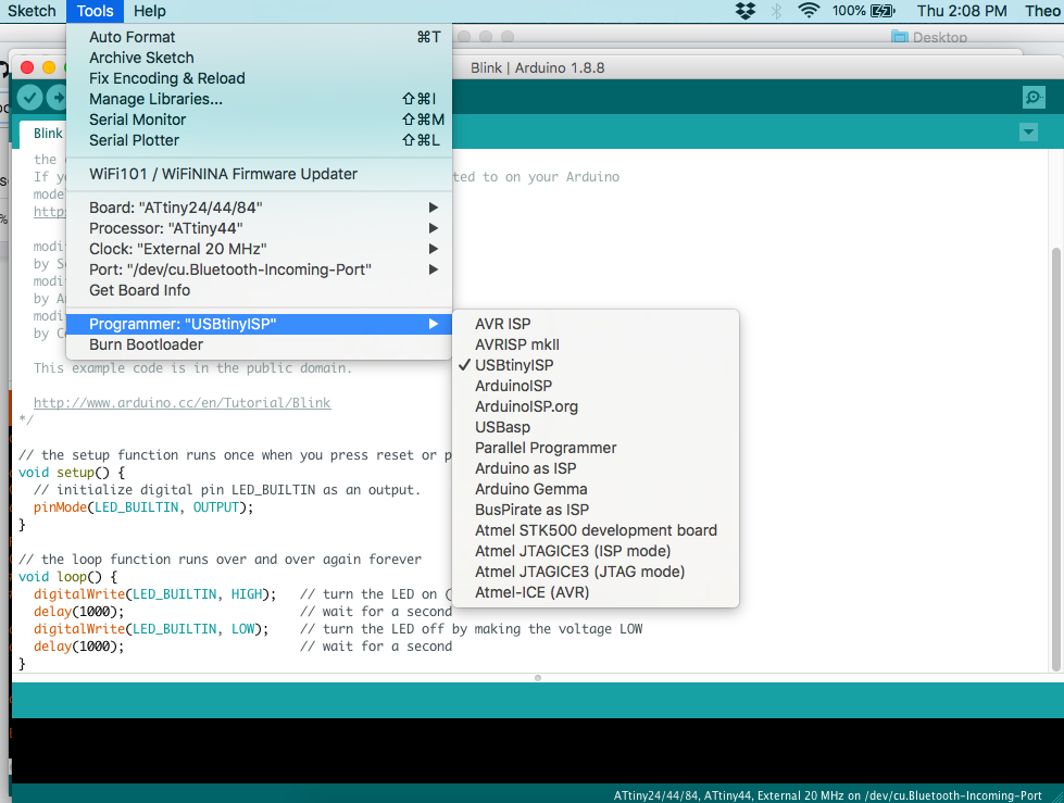 Finally it’s time to load your sketch of choice and upload it to your ATtiny. In this case i just uploaded a simple button and led blink sketch to the board.