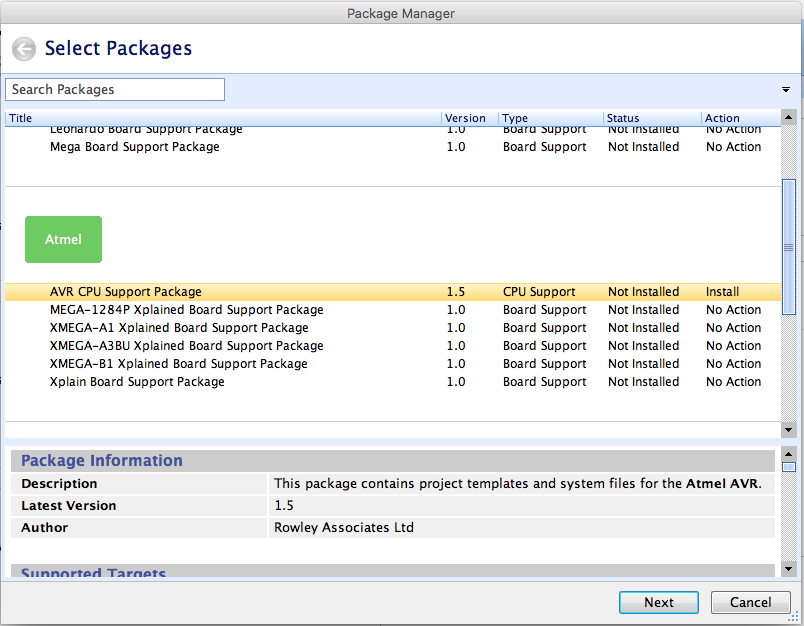 Select your support packages>> next then it automatically adds the support packages for your MCU