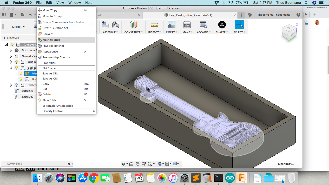 We used a stock design of a Gibson Les Paul guitar chain or key hanger for this assignment and i will make a one-sided mold.