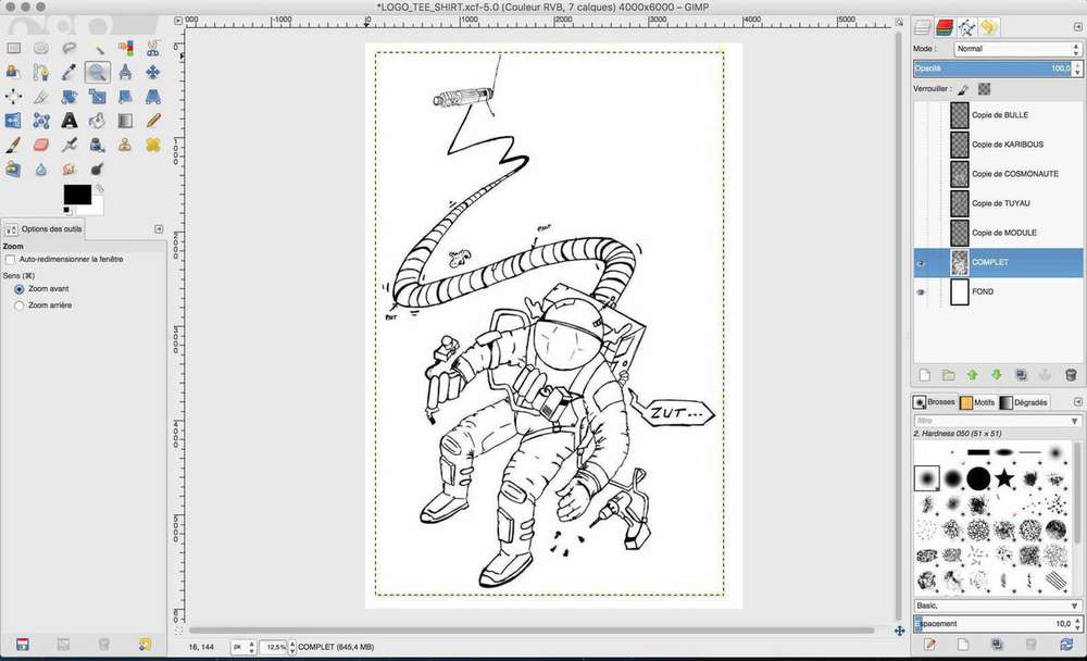 I took a drawing that I’ve made for my robotic team and I will use two software to correct and colorize this drawing in order to make some print on tee-shirt. So I will use :