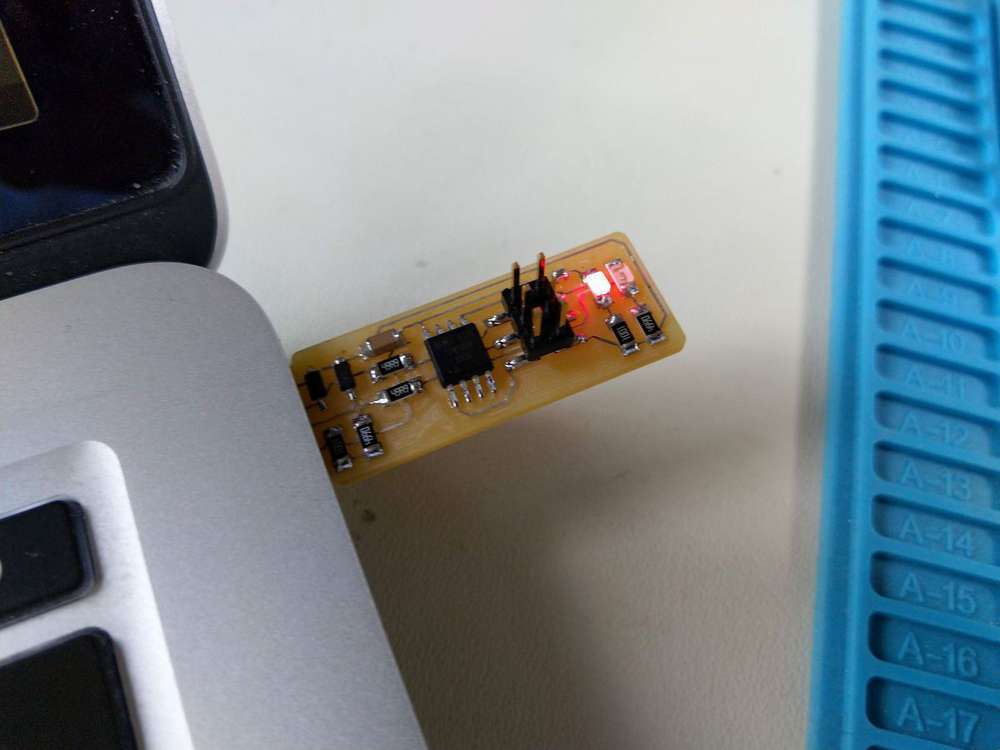 First test, I’ve checked the continuity of the traces and it feels good so I put it on my USB port and the LED turned red