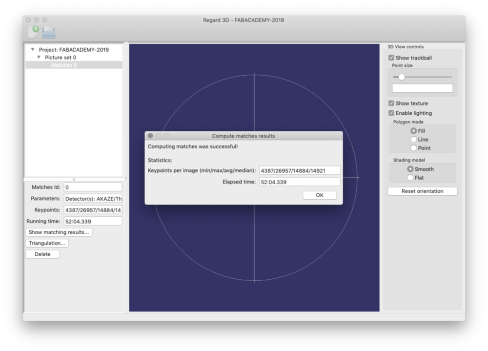 But after 52 min, I’ve got nothing and the software tell me that 0 matches were found … I decided to try another software before re-trying Regard3D
