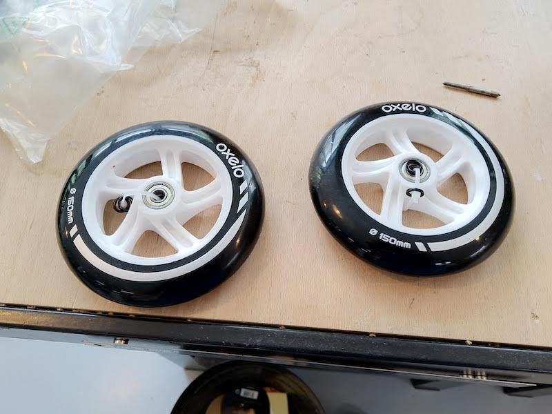 | The scooter wheels | View of the wheel on the box | The box with the wheel |