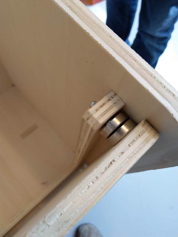 To maintain the front door, I decided to use some magnet that I screw on the box.