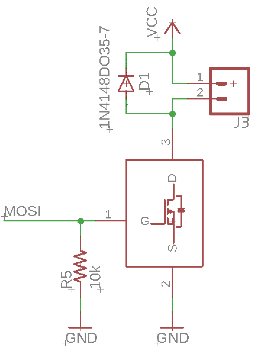 During week 7, I add to my board a circuit with a mosfet, so I can test some output like motors or electrovalve. The circuit is the following :