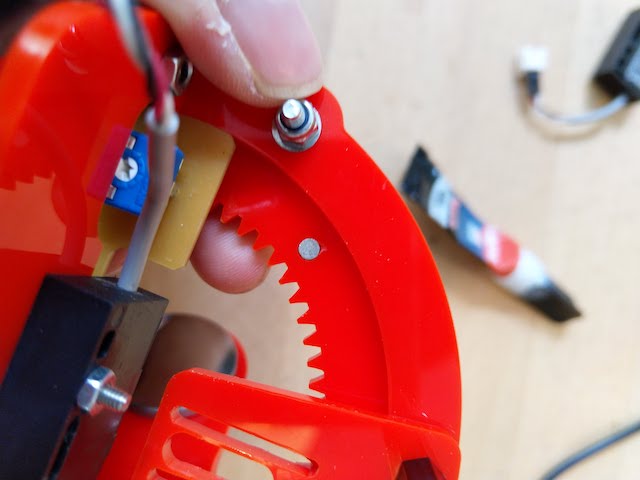 The magnet will be glue on the rotating ring. To do that, follow the steps :