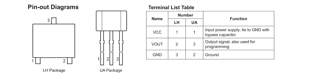 To do that, I’ve choose the hall sensor A 1324LLHLT. It’s a low noise linear hall sensor with an analog output.